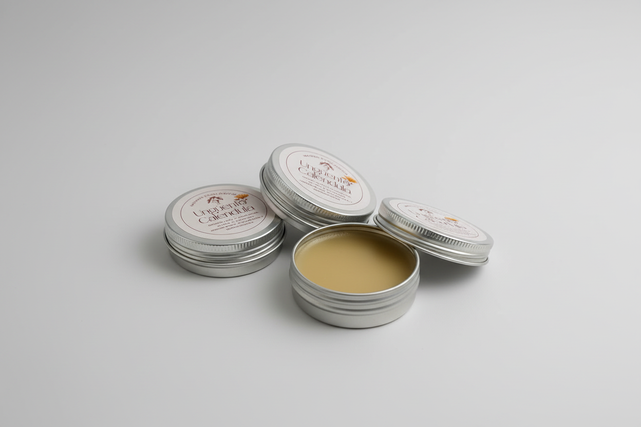 Ungüento natural calmante y regenerador que protege la piel de irritaciones, quemaduras leves y resequedad. Con caléndula, manzanilla, cera de abejas y lanolina vegetal, hidrata profundamente, favorece la cicatrización y es ideal para zonas sensibles y cuidado post-tatuaje.